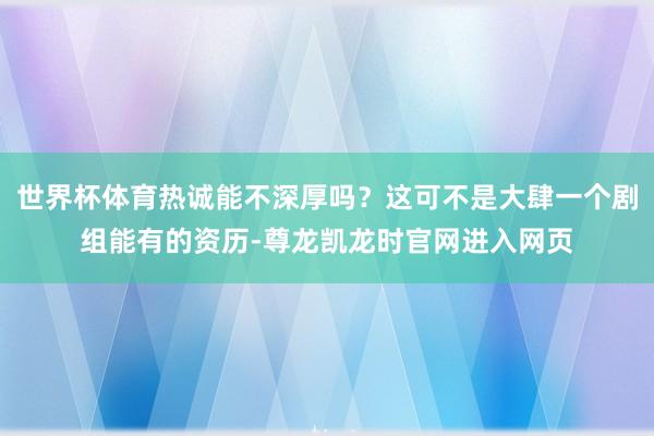 世界杯体育热诚能不深厚吗?这可不是大肆一个剧组能有的资历-尊龙凯龙时官网进入网页