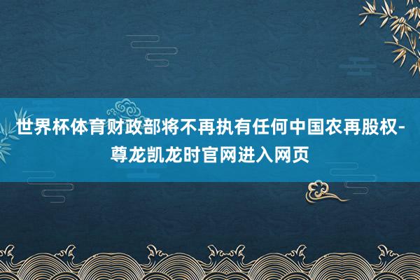 世界杯体育财政部将不再执有任何中国农再股权-尊龙凯龙时官网进入网页
